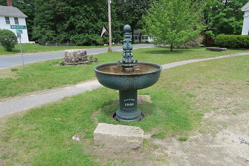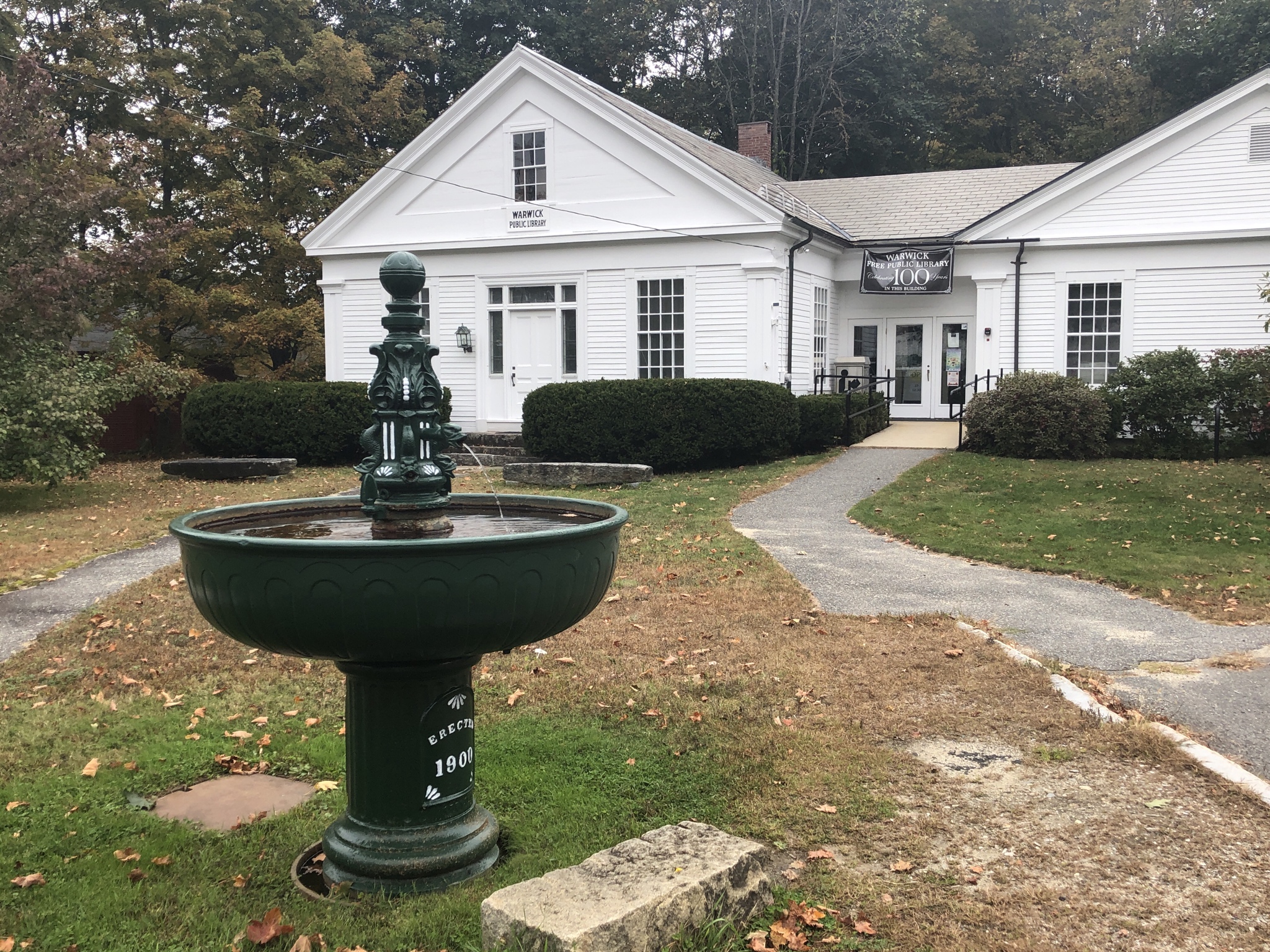 Captain Ball's Fountain in front of the Warwick Free Library, 2019