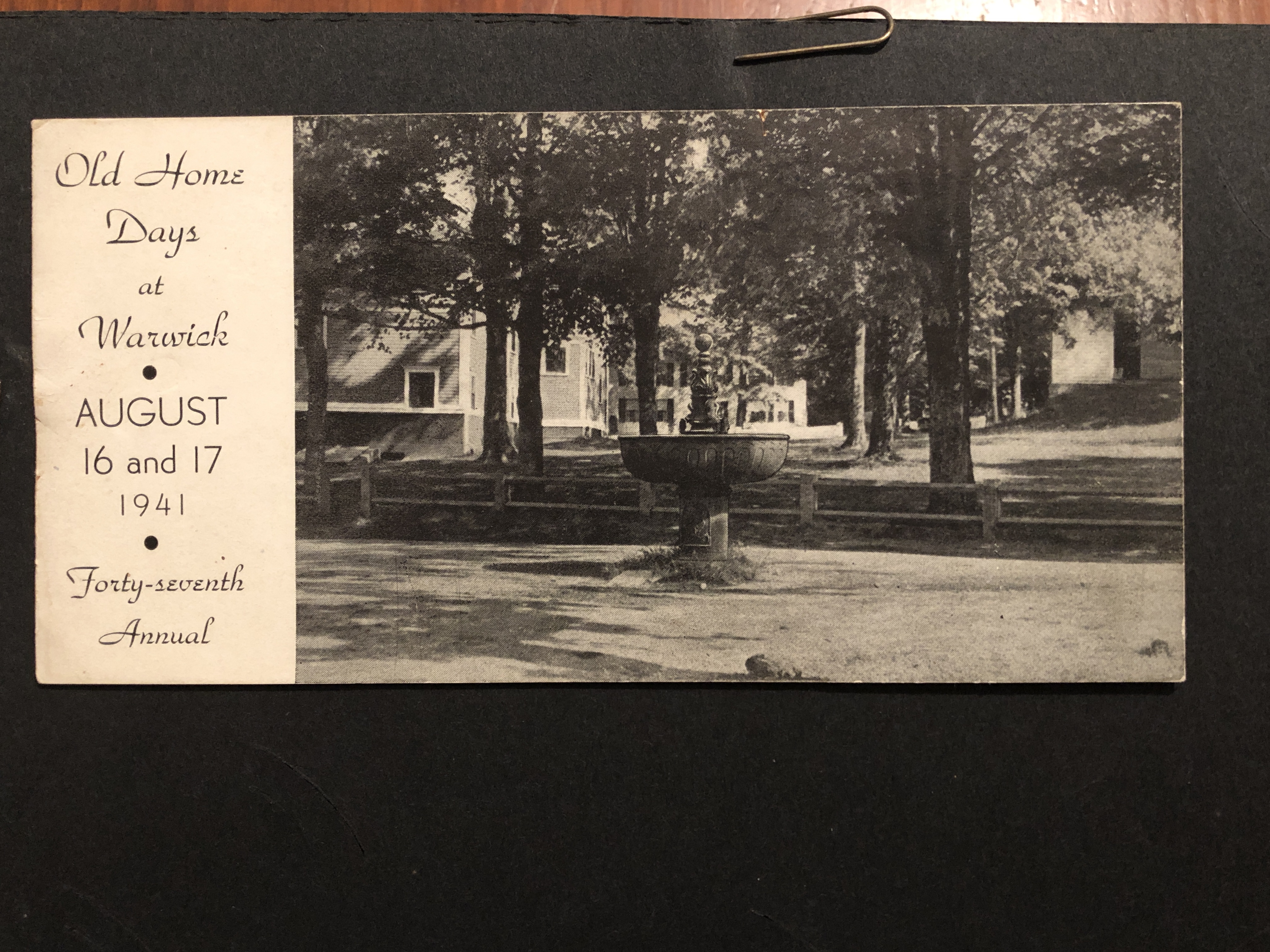 47th Annual Old Home Days postcard, dated August 16 and 17 1941 Source: Warwick Historical Society