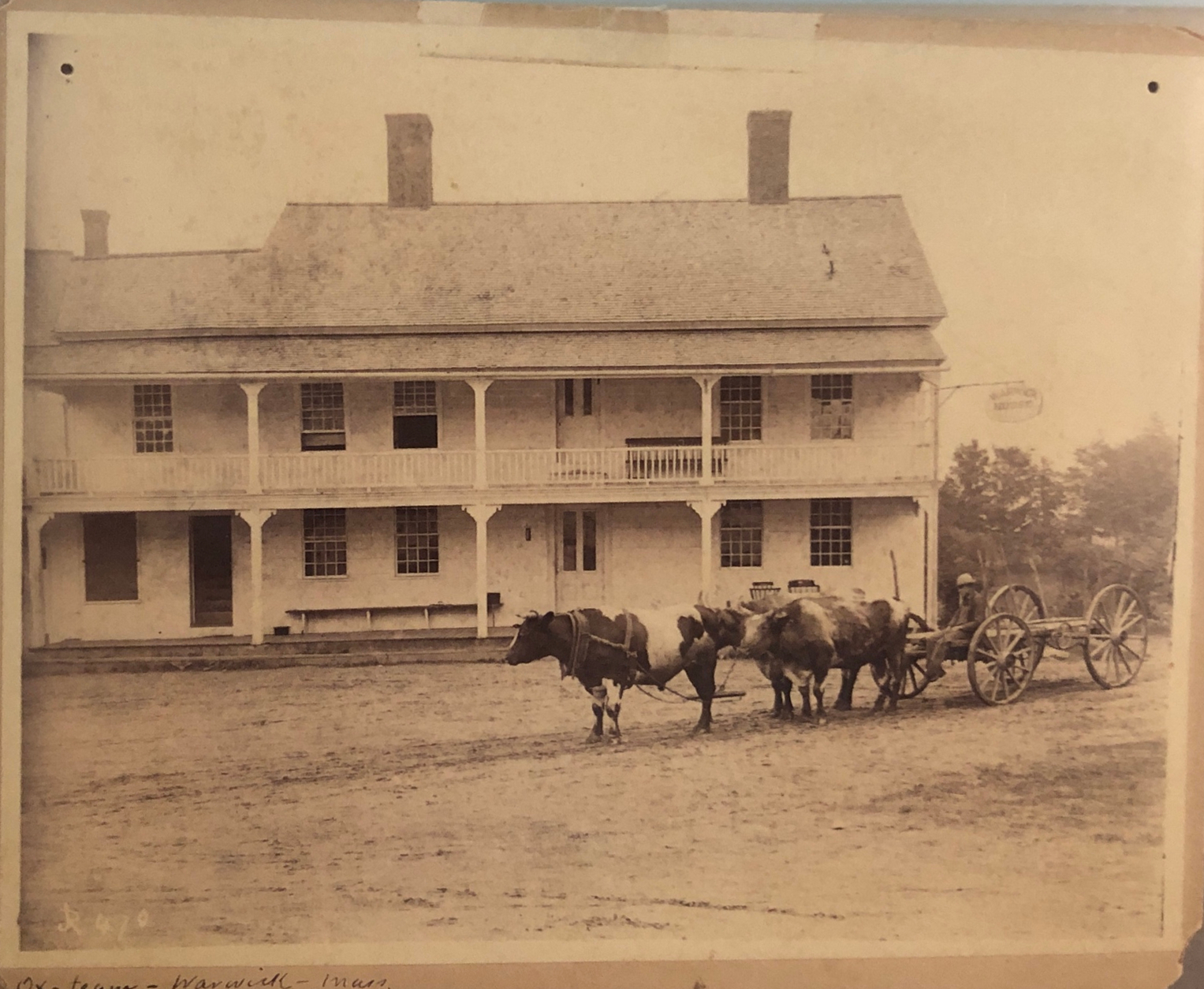 Image of a wagon pulled by oxen in front of Warwick Inn, undated. Source: Warwick Historical Society