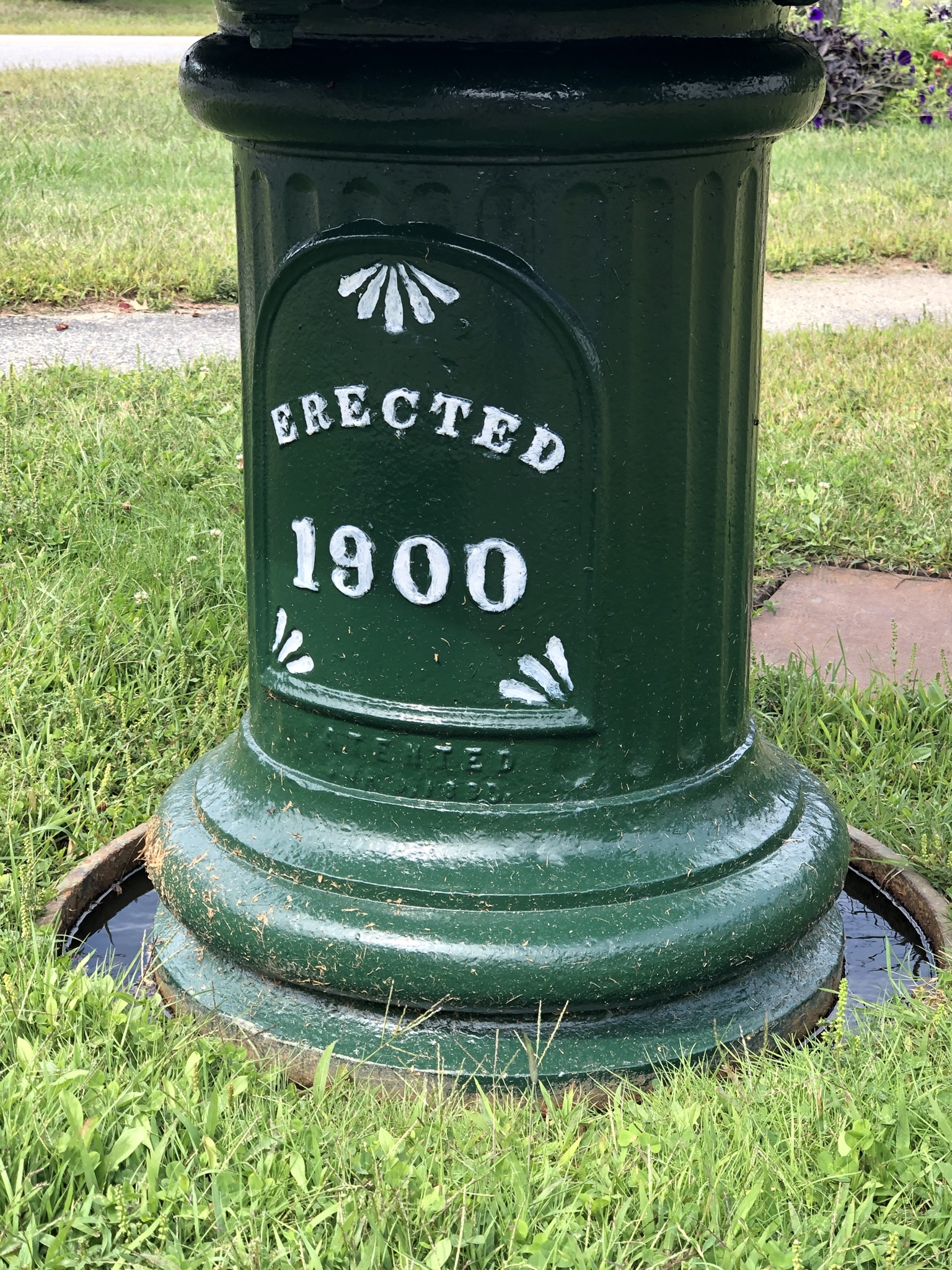Close-up of pedestal of the fountain, declaring it was erected in 1900