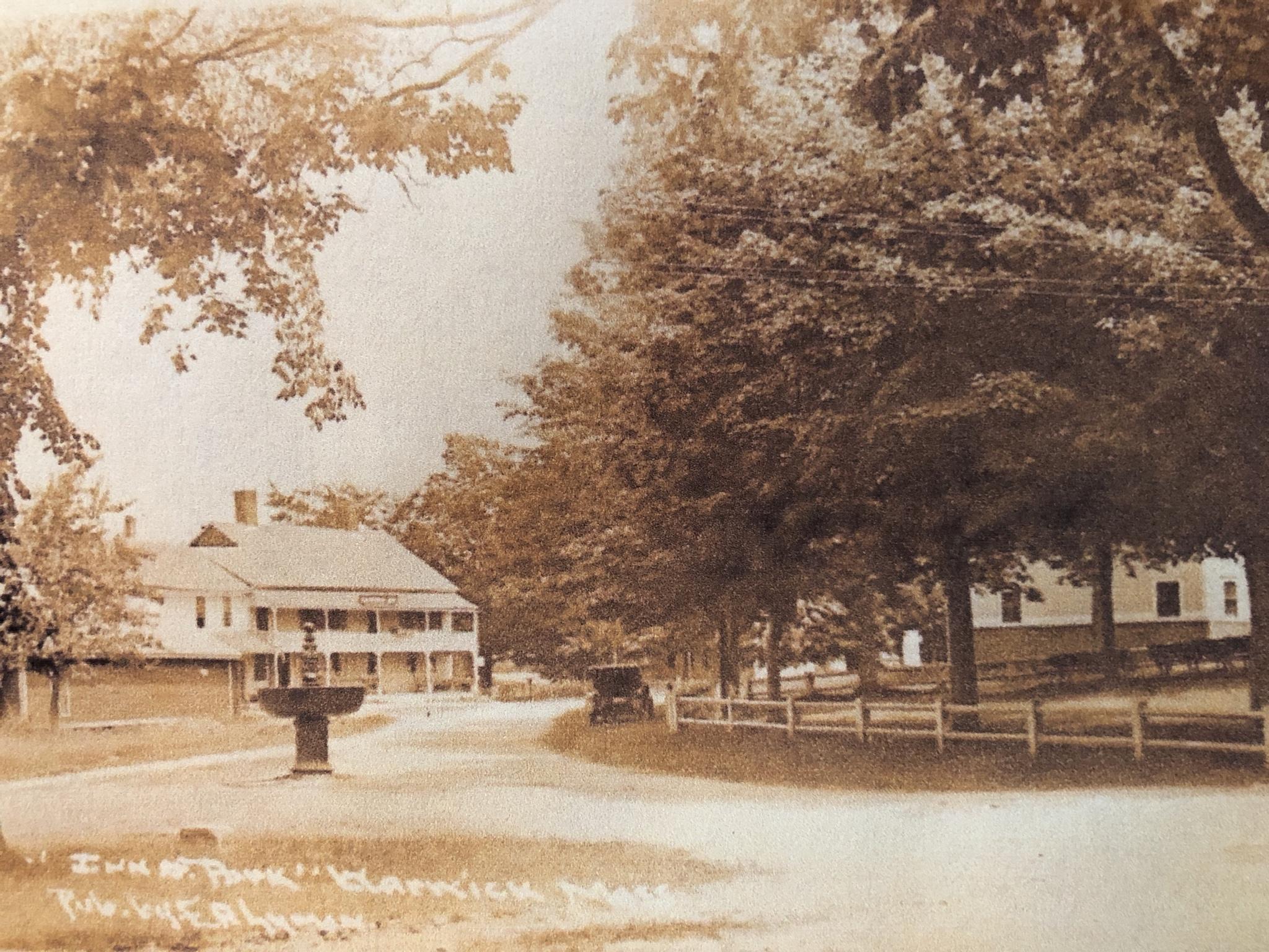 Image of Captain Ball's Fountain circa 1920's or 1930s with Warwick Inn in the background. Source:Warwick Historical Society